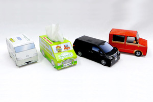 オリジナルボックスティッシュで動きと楽しさを ノベルティの定番品です 車型・バス型や、動物のお面がついたティッシュをオリジナルで製作いたします メーカー様のオリジナルキャラクター、車などオリジナル対応致します。